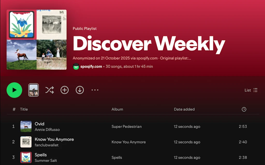 1️⃣ The first tool is called Spoqify, and it creates a clean version of any Spotify playlist or radio station so you can listen to music like an anonymous user.