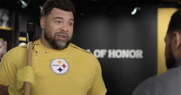 In the ad, created internally with L.A.-based NFL Creative Marketing, Heyward and Bettis are in the Steelers’ Hall of Honor, with Heyward ready to take a sledgehammer to a Super Bowl ring display to ensure the Steelers’ rings are featured at the 2026 Draft.