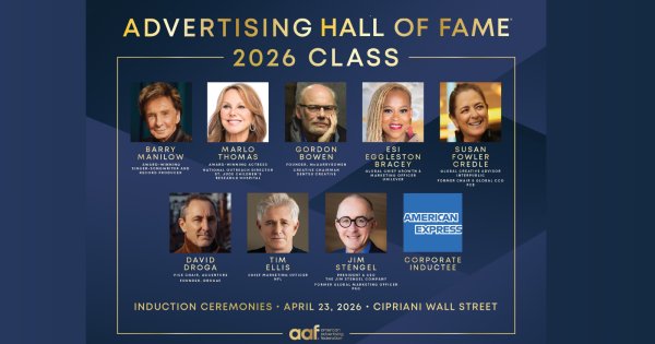 Inductees will be formally celebrated at the Advertising Hall of Fame Induction Gala on April 23, 2026, at Cipriani Wall Street in New York City.