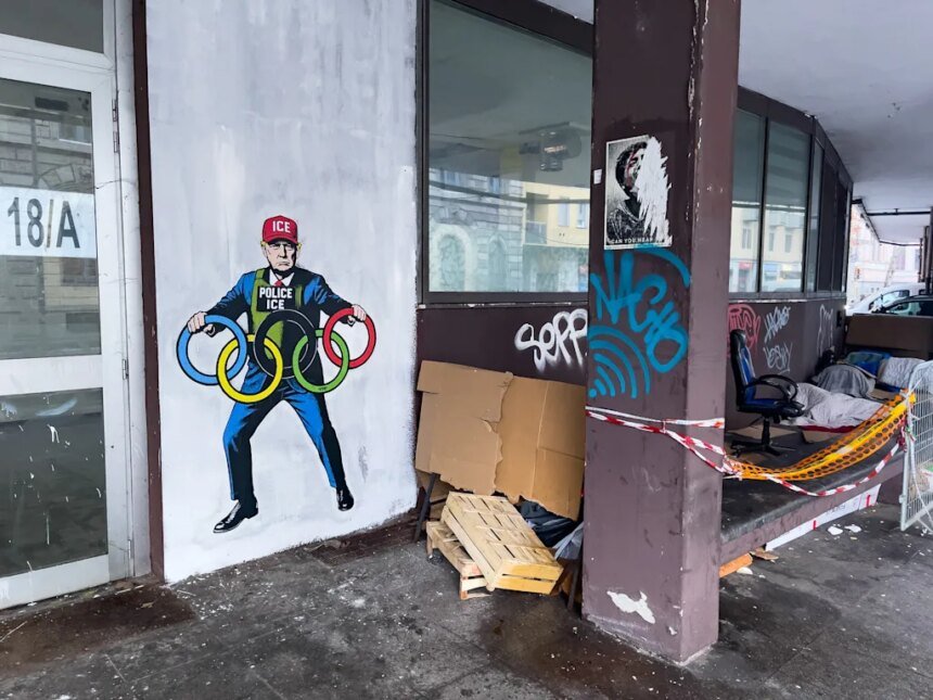 Laika is one of many Italian citizens who have taken to using artwork as a form of protest against ICE’s presence at the Olympics. Here are three examples of the most powerful work so far.