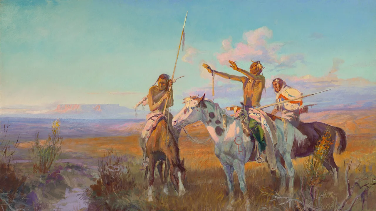 The auction will include 16 sculptures by Remington, along with his painting “Coming to the Call,” which is expected to sell for $6 million to $8 million, according to Christie’s. There will also be both a small and large version of Remington’s “Bronco Buster” bronze sculpture. Russell’s “The Sun Worshippers” is projected to sell for $4 million to $6 million. Bierstadt’s bright vistas of mountains and plains are also among the featured works.