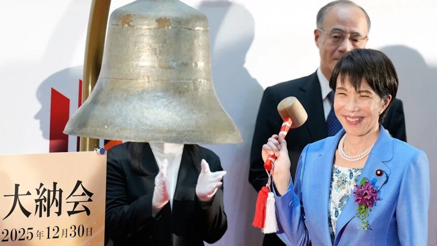 In Tokyo, Japanese Prime Minister Sanae Takaichi rang out the final session for 2025 in a traditional year-end ceremony.