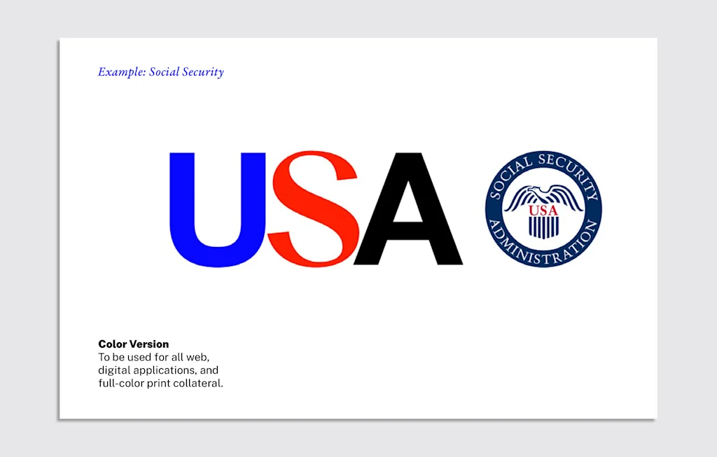 Before leaving with Biden, Martorana wanted to simplify the cacophony of digital services with a visual system that would unite all government websites under USA.gov. While the project ended with the Biden administration, the proposed brand featured a logo from Pentagram, with a stoic U and A, but a stylish, energetic S in the middle. Its simple brilliance was that it could then be paired with every seal used across the government, coalescing many government services into a more ideal entity. And it didn’t simply ignore the existing network of 450 agencies that provide ongoing services to the American public.