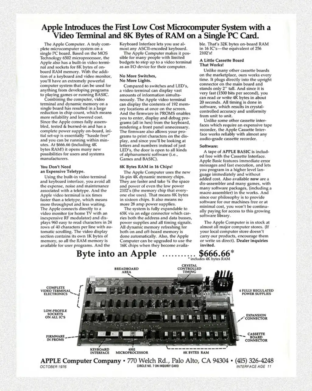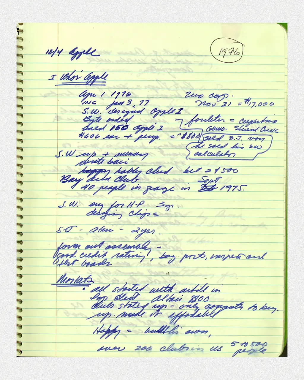 Kottke: When it was time to make the first Apple-1 flyer, Steve and I sat at the kitchen table and crafted the wording together, with him supplying the technical specs, written by hand on a yellow tablet. I never saw Steve using a typewriter, so maybe he took the handwritten copy directly to a typesetter.