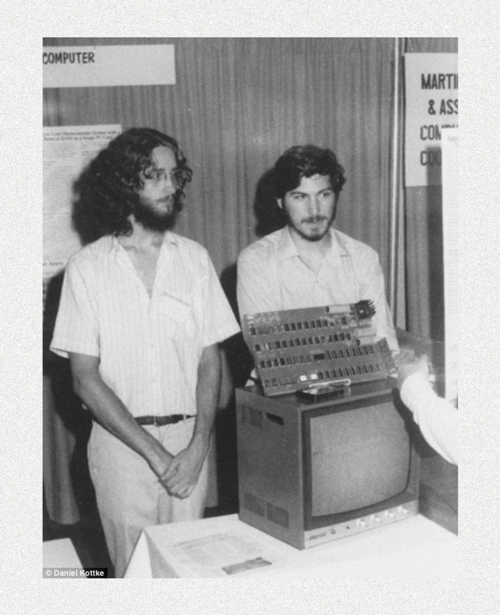 Kottke: When Steve was in New Jersey for the Atlantic City show [PC ’76], I brought him up to New York. He stayed overnight at my parents’ house, and I took him into Manhattan to meet my uncle, who was a big bigwig banker. Steve is giving my uncle this pitch that we’re looking for funding for this computer startup company, but he had really no demo. We had a one-page flyer, and that was it. My uncle was very polite and said, “Okay, we’ll get back to you,” which he never did, of course.
