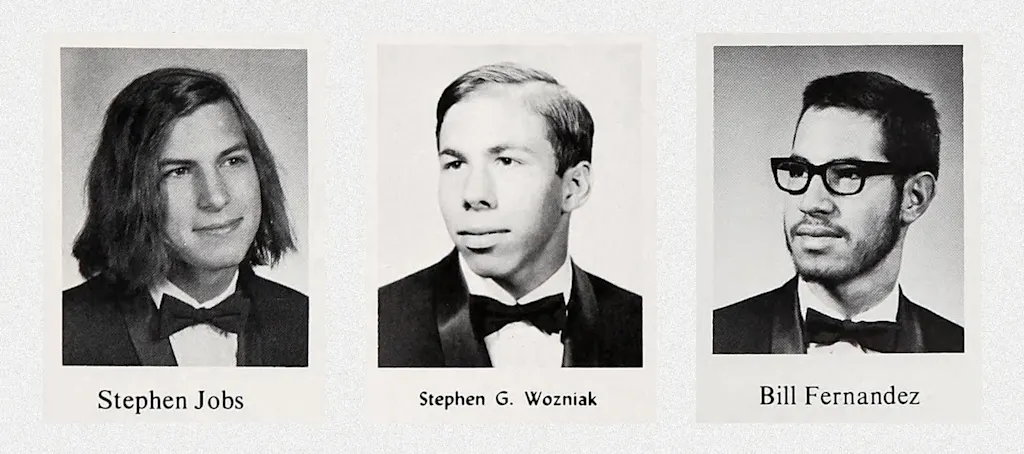 Bill Fernandez, Apple’s first full-time employee: When Steve Jobs moved into the area and started going to the same junior high school as me, Cupertino Junior High School, we became friends. We were in the eighth grade, class of 1968. I got him interested in electronics. We would bicycle over to each other’s houses and work in each other’s garages on pretty trivial electronics projects—buzzers, flashing lights, sirens, and so forth.