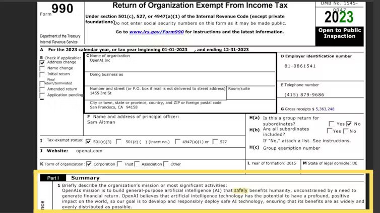 While reviewing its latest IRS disclosure form, which was released in November 2025 and covers 2024, I noticed OpenAI had removed “safely” from its mission statement, among other changes. That change in wording coincided with its transformation from a nonprofit organization into a business increasingly focused on profits.