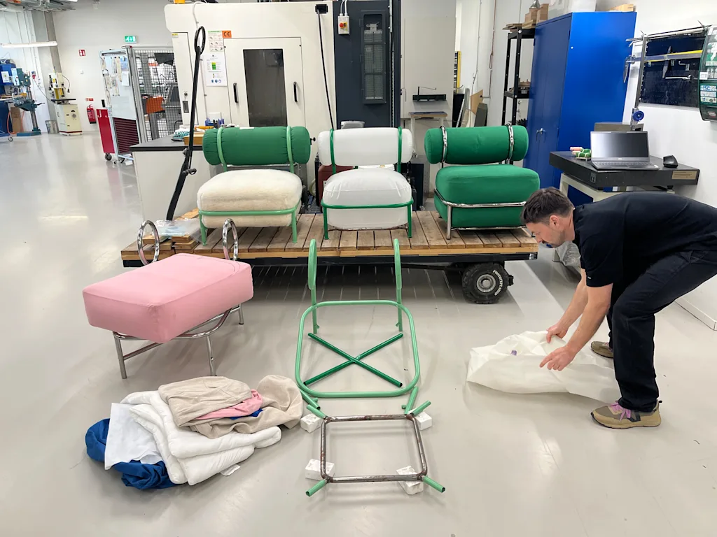 Axelsson saw the chance to revive his inflatable easy chair. This time, in the spirit of throwing everything at the wall, he got the go-ahead to at least explore the idea. He immediately started welding. He ended up building about 20 different versions of the chair, with varying tubular chrome frame configurations and bulbous hand-sealed inflation chambers. Several of these iterations were on display when I walked into Ikea’s headquarters in early April.