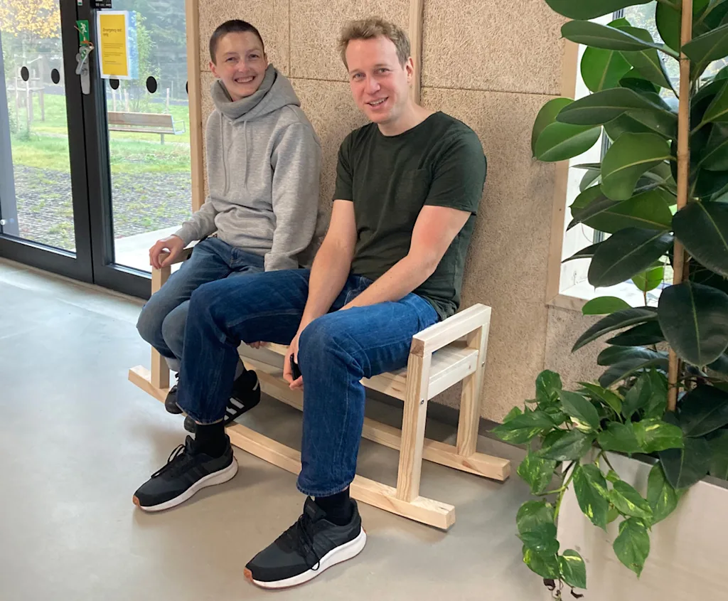 The last prototype they made is sitting in the prototype shop on the day I visit. O’Brian, its early champion, and Ejdemo, its biggest critic, take a seat on it together and begin rocking. Neither can help but laugh.