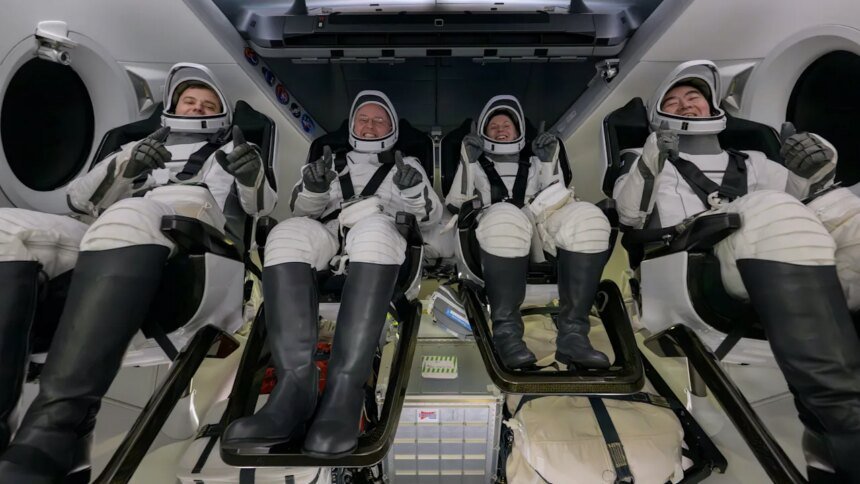 The astronauts emerged from the capsule, one by one, within an hour of splashdown. They were helped onto reclining cots and then whisked away for standard medical checks, waving to the cameras. Isaacman monitored the action from Mission Control in Houston, along with the crew’s families.