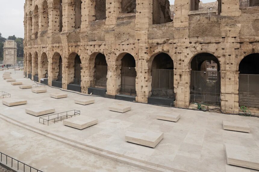 The work was led by Stefano Boeri Interiors in conjunction with the Parco Archeologico del Colosseo. It’s based on decades worth of archeological research into the original extent of the Colosseum, which has been carved away over time by the development of Rome and the slow decay of the monument itself.