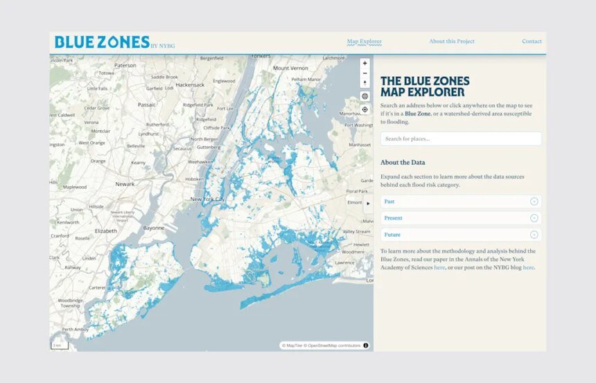 Researchers at the New York Botanical Garden have created a new interactive map of the city showing the areas most at risk of flooding. They’re calling them “Blue Zones,” places where water is, used to be, or will be due to climate change. More than one-fifth of the city is in a Blue Zone, according to a paper published in the Annals of the New York Academy of Sciences.
