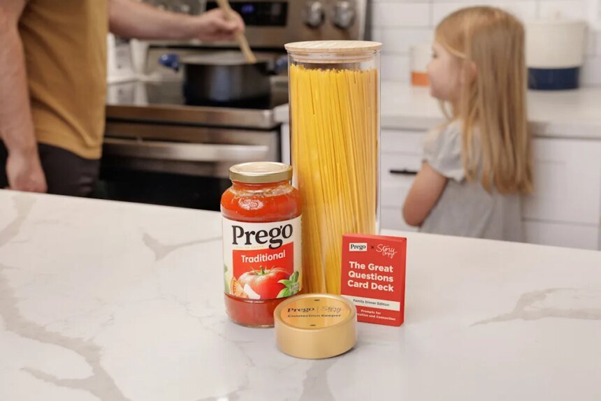 The device is part of a limited-time offering called the Connection Keeper Bundle, which launches on April 27 for $20. It includes some Prego sauce, a “Connection Keeper” recording device and instruction manual, and a pack of conversation prompt cards to spark discussion.
